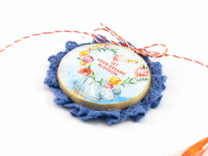Trebuie să știți că broțișoarele noastre sunt chic cu sau fără șnur, sunt martisoare lucrate manual, cu pasiune și căldură pentru că ne dorim să surprindem cât mai bine toate sentimentele și amintirile pe care le poartă. De la pasta de modelaj care formeaza bazele acestor martisoare pana la crosetarea firelor dantelei, de la tusele de pensula, sau firele de lavanda care isi lasa delicat amprenta – totul are rolul de a raspandi bucuria primaverii.