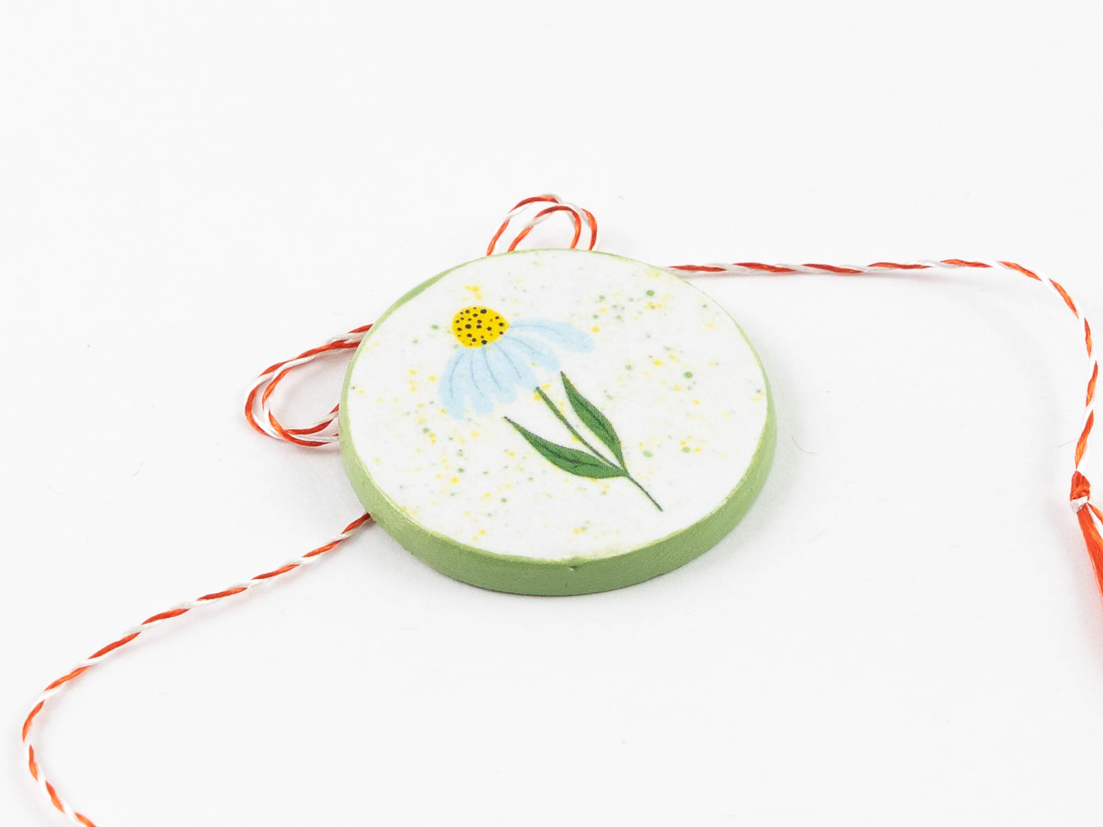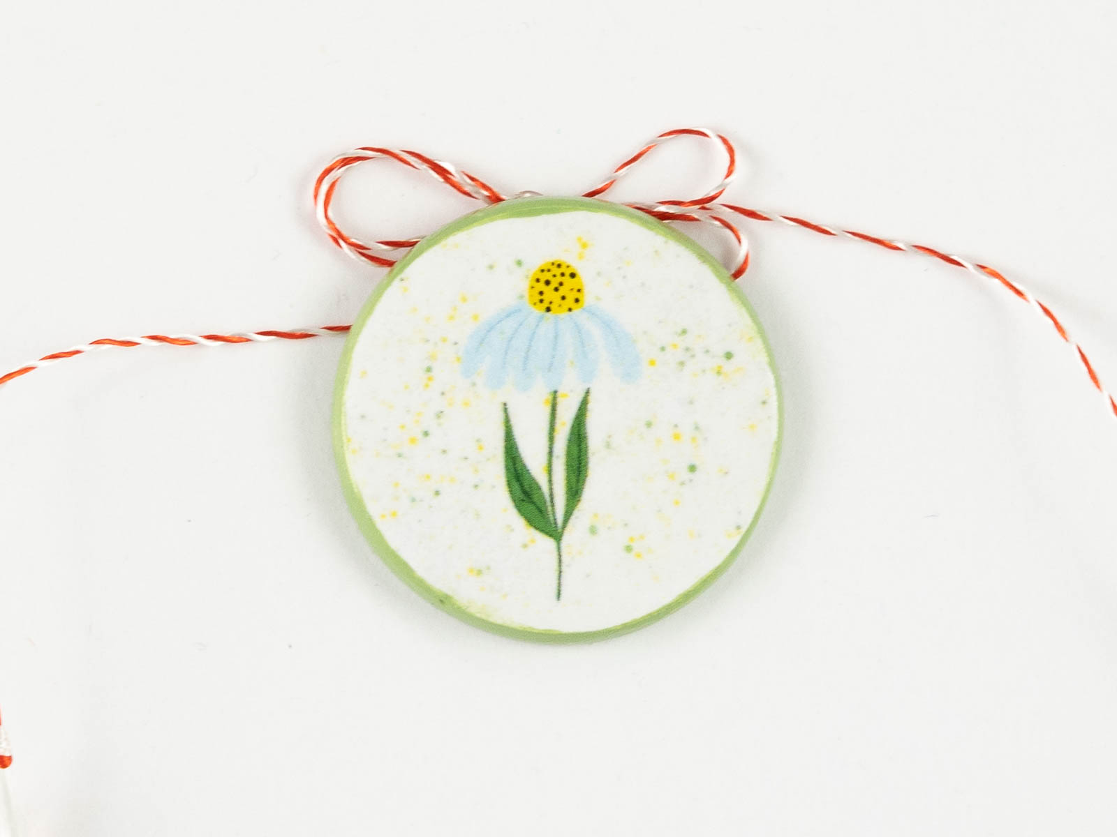 Lucrat manual cu migală și gândul la primăvară. Broțișorul are ac de broșă la spate, iar șnurul se poate da jos cu ușurință astfel ca va putea fi purtat și in restul anului – un accesoriu delicat care să aducă mereu aminte de primăvară.