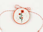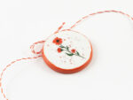 Lucrat manual cu migală și gândul la primăvară. Broțișorul are ac de broșă la spate, iar șnurul se poate da jos cu ușurință astfel ca va putea fi purtat și in restul anului – un accesoriu delicat care să aducă mereu aminte de primăvară.