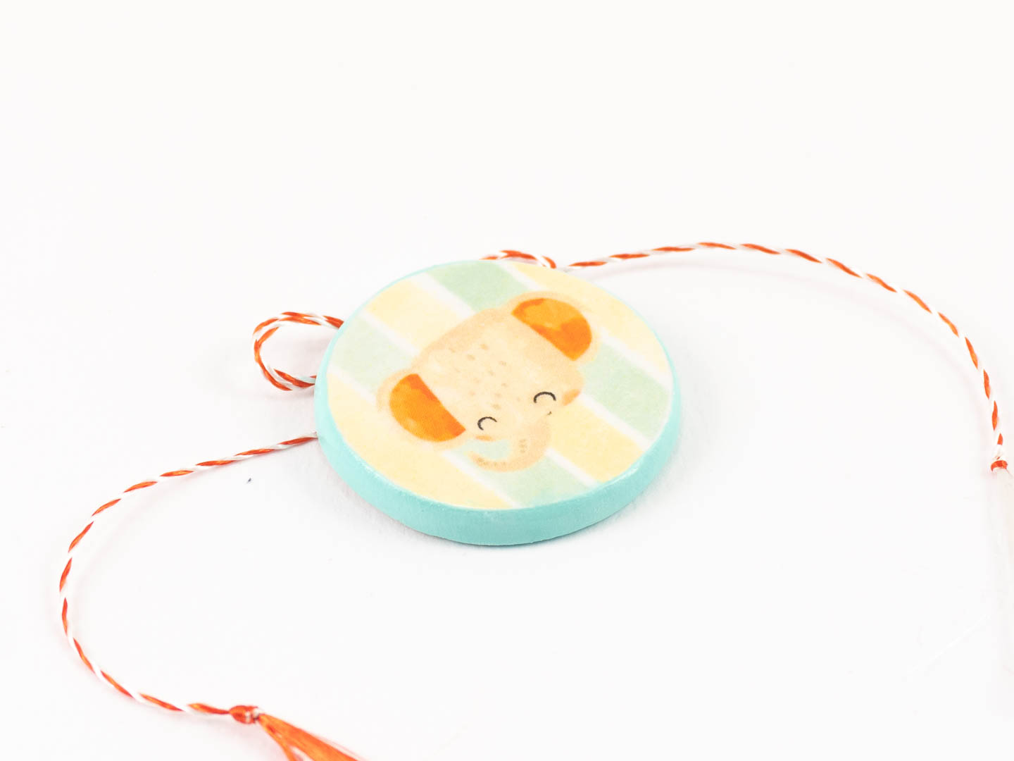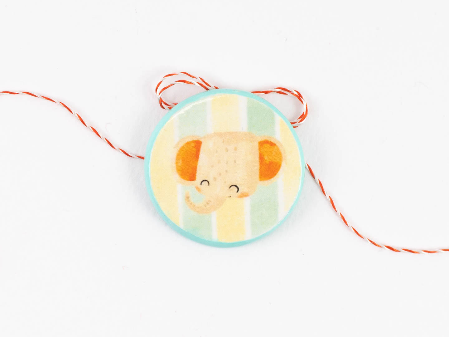 Elefanțelul nostru pare că tocmai și-a amintit cea mai drăguță poveste și zâmbește cu tot sufletul. Pe fundal de dungi pastel, acest elefanțel aduce magie și voie bună în fiecare dimineață de primăvară.