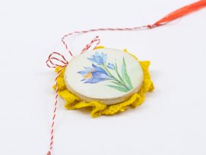 Pentru a desăvârși această broșă mărțișor, i-am adăugat o dantelă realizată în întregime manual. Ea a fost croșetată de niște degete iscusite din fire de poveste. Acul de la spate ii permite prinderea de ținutele de primăvară iar în “extrasezon” aceste mărțișoare se pot metamorfoza în broșe colorate. Astfel aceste mărțișoare broșă devin niște accesorii cochete, delicate, ușor de asortat oricărui zâmbet!