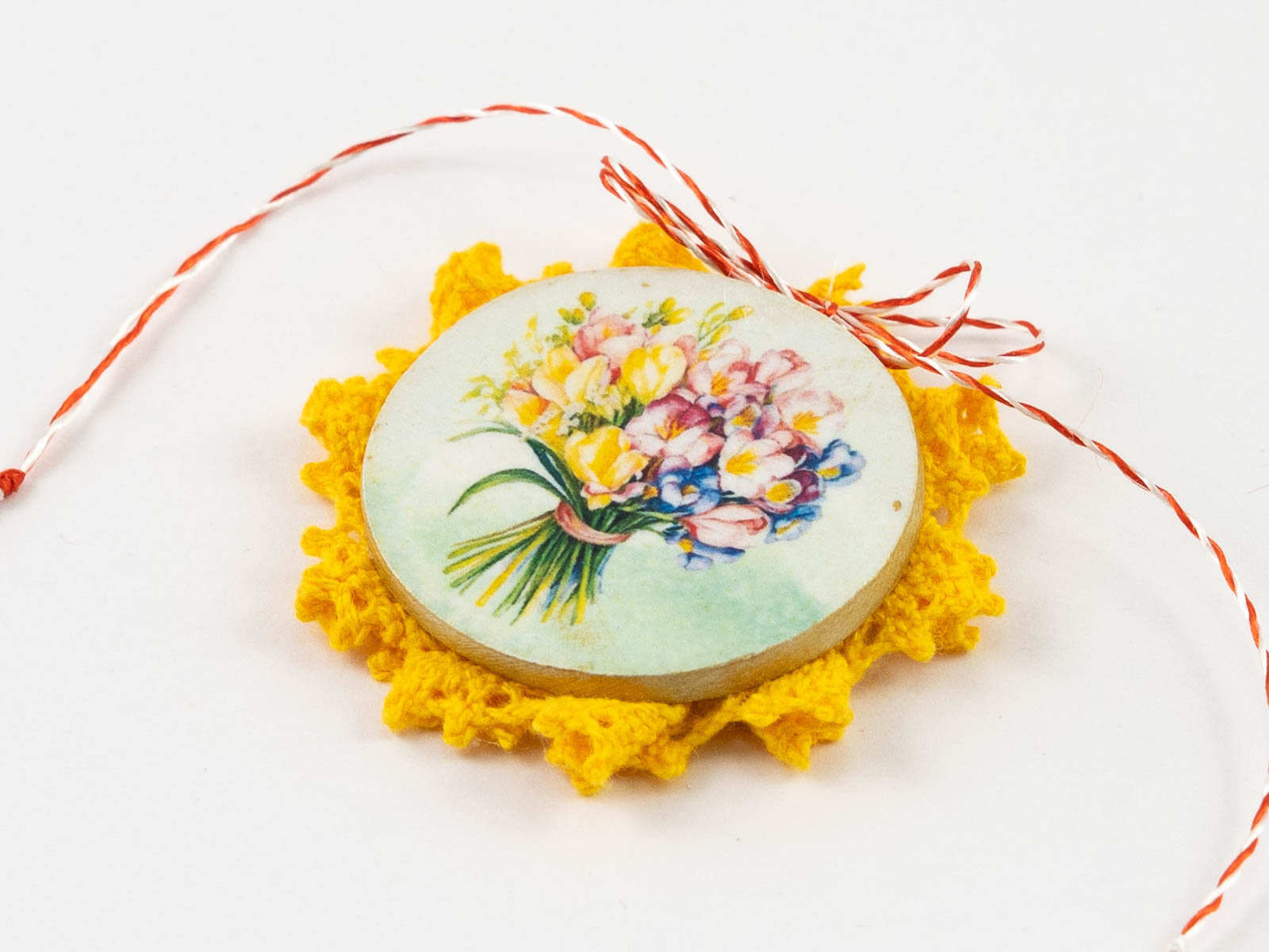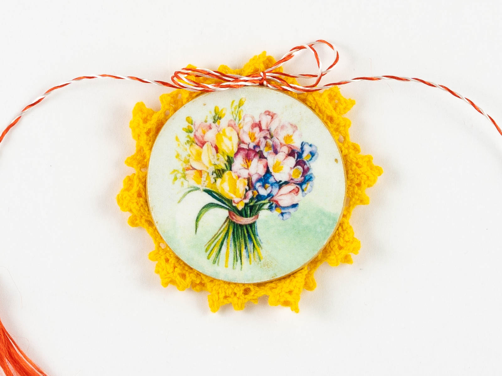 Toate aceste mărțișoare broșă sunt lucrate manual, decorate prin tehnica decoupage și împodobite de o dantelă delicată.