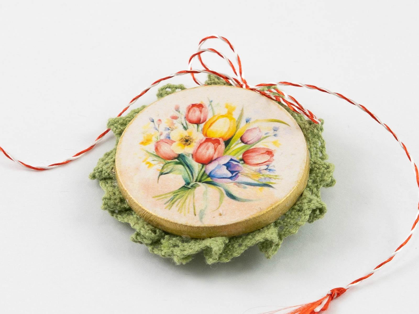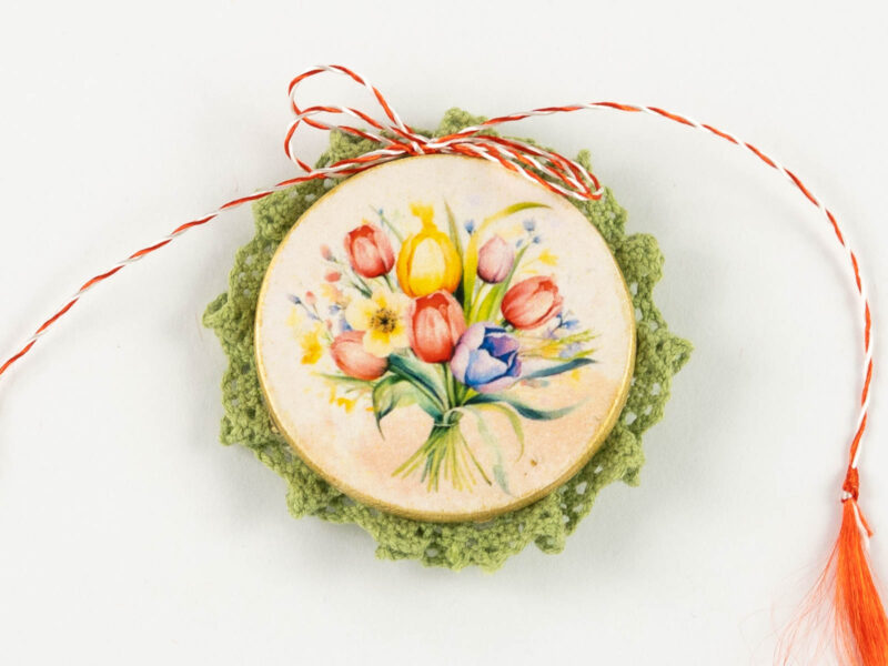 Toate aceste mărțișoare broșă sunt lucrate manual, decorate prin tehnica decoupage și împodobite de o dantelă delicată.